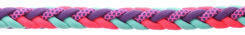 This braid is ideal for a variety of projects. It is most commonly used to braid dog leashes, but it is also often used in the equestrian world. This braid is round and lies comfortably in the hand.