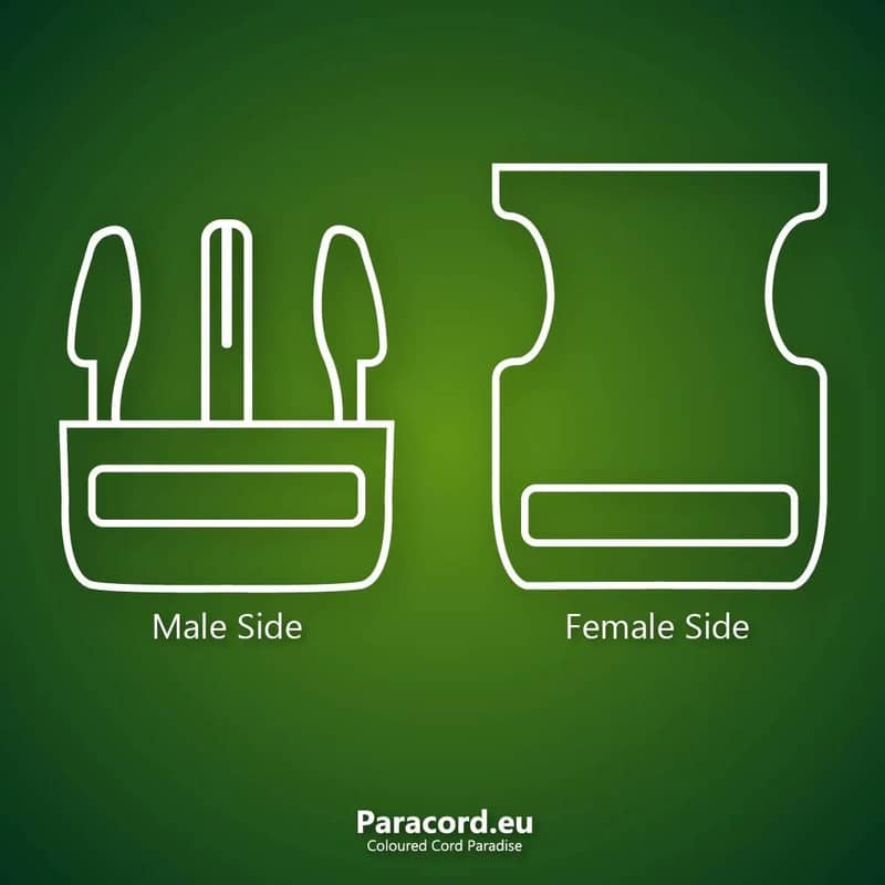 Only the male side of the buckle is used in the first steps. From step 7 onwards, you also use the female side.
